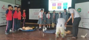 The students and teachers of the school were given training on when and how to give CPR. This pogramme aimed to acquaint students with Basic Emergency and Cardiac Arrest and its management.